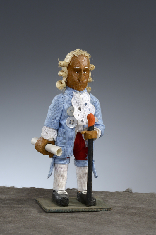 Rousseau, nu-tête, porte la perruque roulée ; le gilet est ouvert et laisse apparaître le col et le jabot. Le manteau est à col de fourrure (habit d'arménien).» (FM)