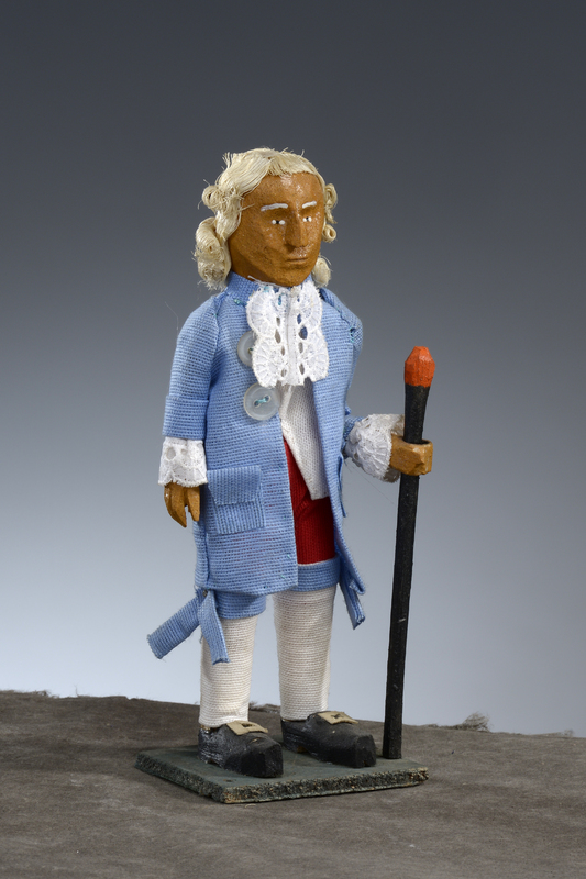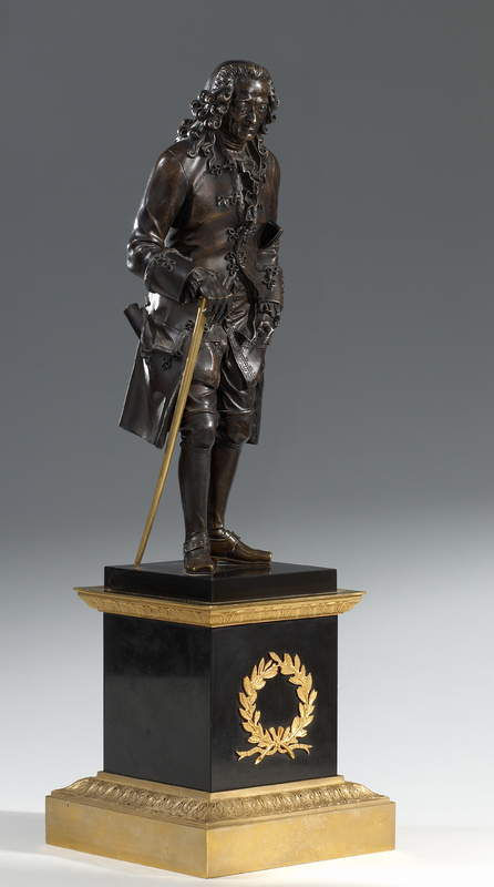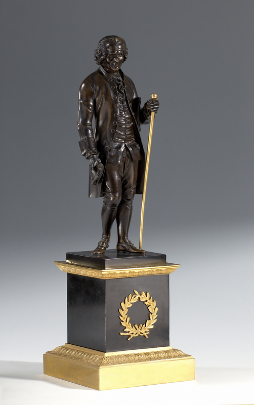 «Le couple réalisé par le sculpteur [François Marie] Suzanne [1750-v. 1802] et proposé au public - soit en "talc", soit en bronze ' [1790] montre les deux personnages en pied, marchant en s'appuyant sur une canne, tête nue. Ces modèles en bronze sont placés sur deux socles cubiques, de bronze également, dont la décoration semble appartenir à la période du Directoire (palmettes) [ou Consulat ?].» (FM)