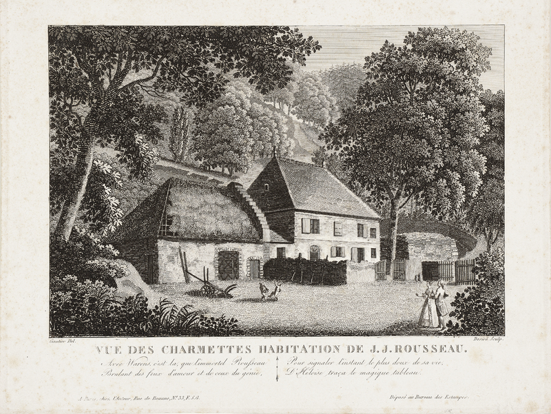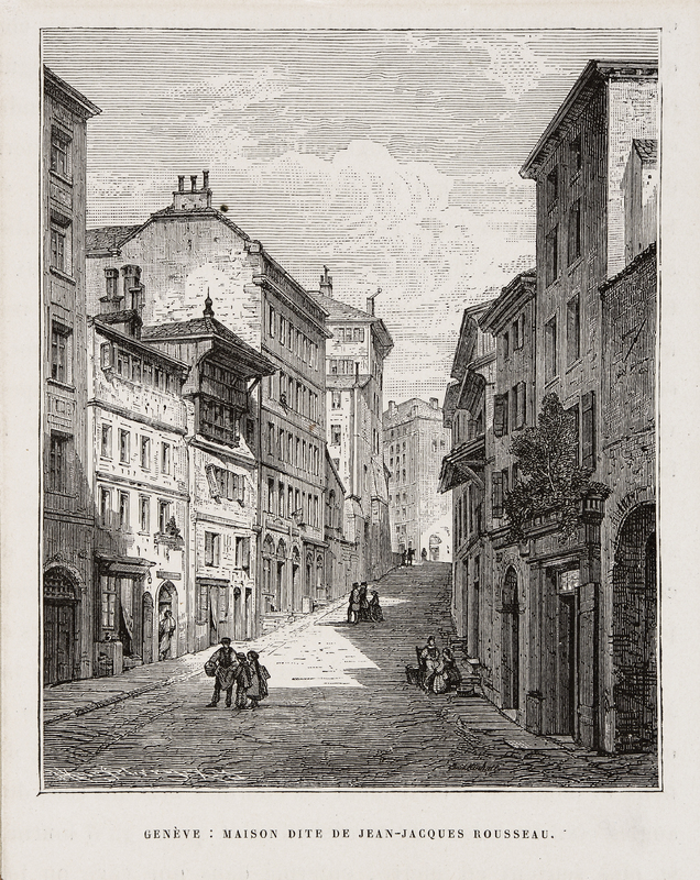Vue de la maison natale de J. J. Rousseau à Genève, isolée dans la nature.