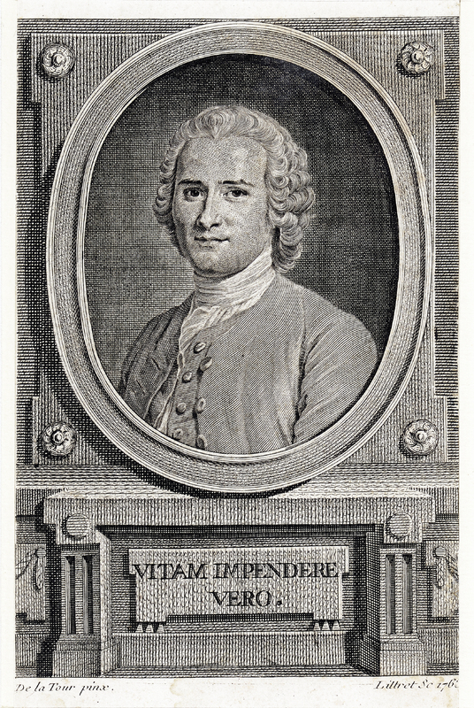 Premier portrait gravé d'après la Tour; frontispice de l'édition de Neuchâtel 1764.