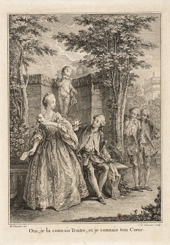 Pl. IX, 3e Vol., p. 107, de Le Comte de Valmont: ou, Les égaremens de la raison, lettres recueillies ['] (1e éd. 1774) de l'abbé Philippe Louis Gérard (1737 ? ' 1813), probablement de l'édition illustrée de 1777-1778.