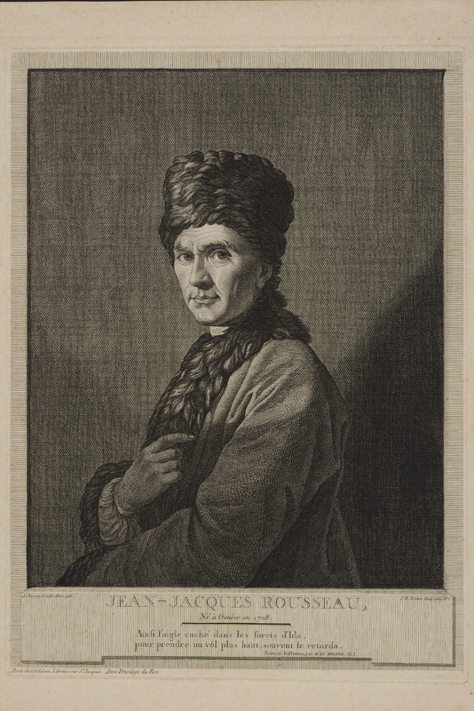 Portrait de Rousseau en buste, le corps tourné de trois-quarts vers la gauche, en habit arménien; de la main droite, il tient la fourrure de son manteau.