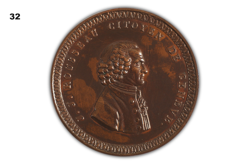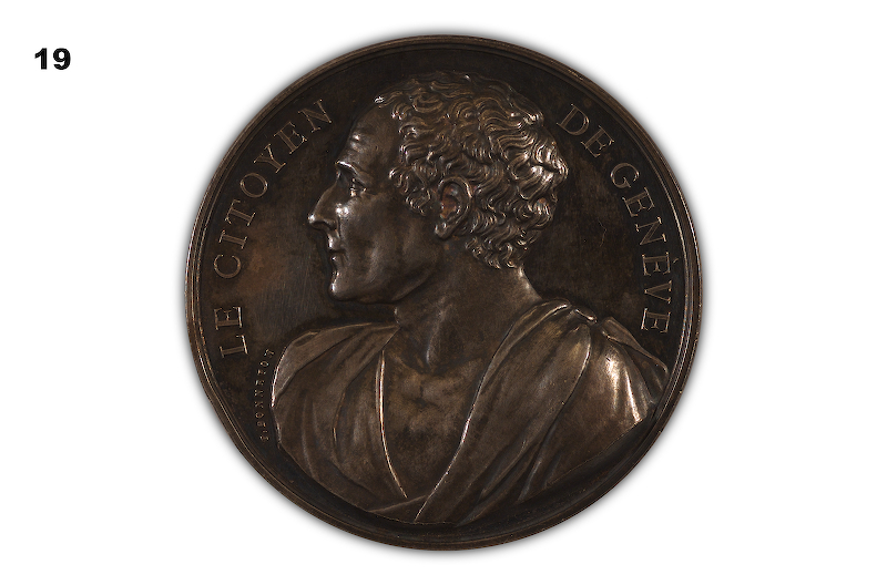 Revers: NÉ | A GENEVE | EN M.DCC.XII. | MORT | EN M.DCC.LXXVIII. | COLLECTION | DES HOMMES ILLUSTRES | M.DCCC.XXIII.