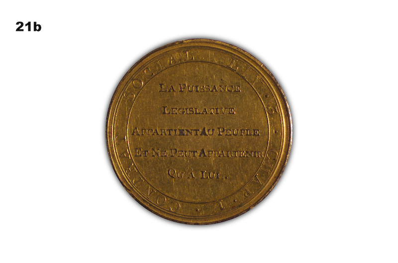 Revers: LA PUISSANCE | LÉGISLATIVE | APPARTIENT AU PEUPLE | ET NE PEUT APPARTENIR | QU'À LUI.; au pourtour: CONTRAT SOCIAL LIV. 3. CHAP. 1.