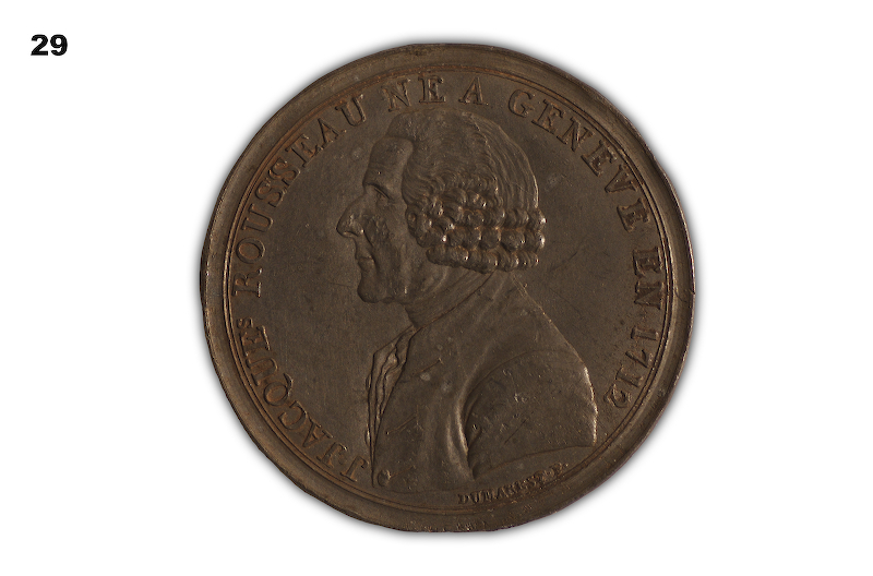 Avers: J.JACQUE.S ROUSSEAU NE A GENEVE EN 1712. Profil à g., perruque, habit français. Signé: DUMAREST.F.