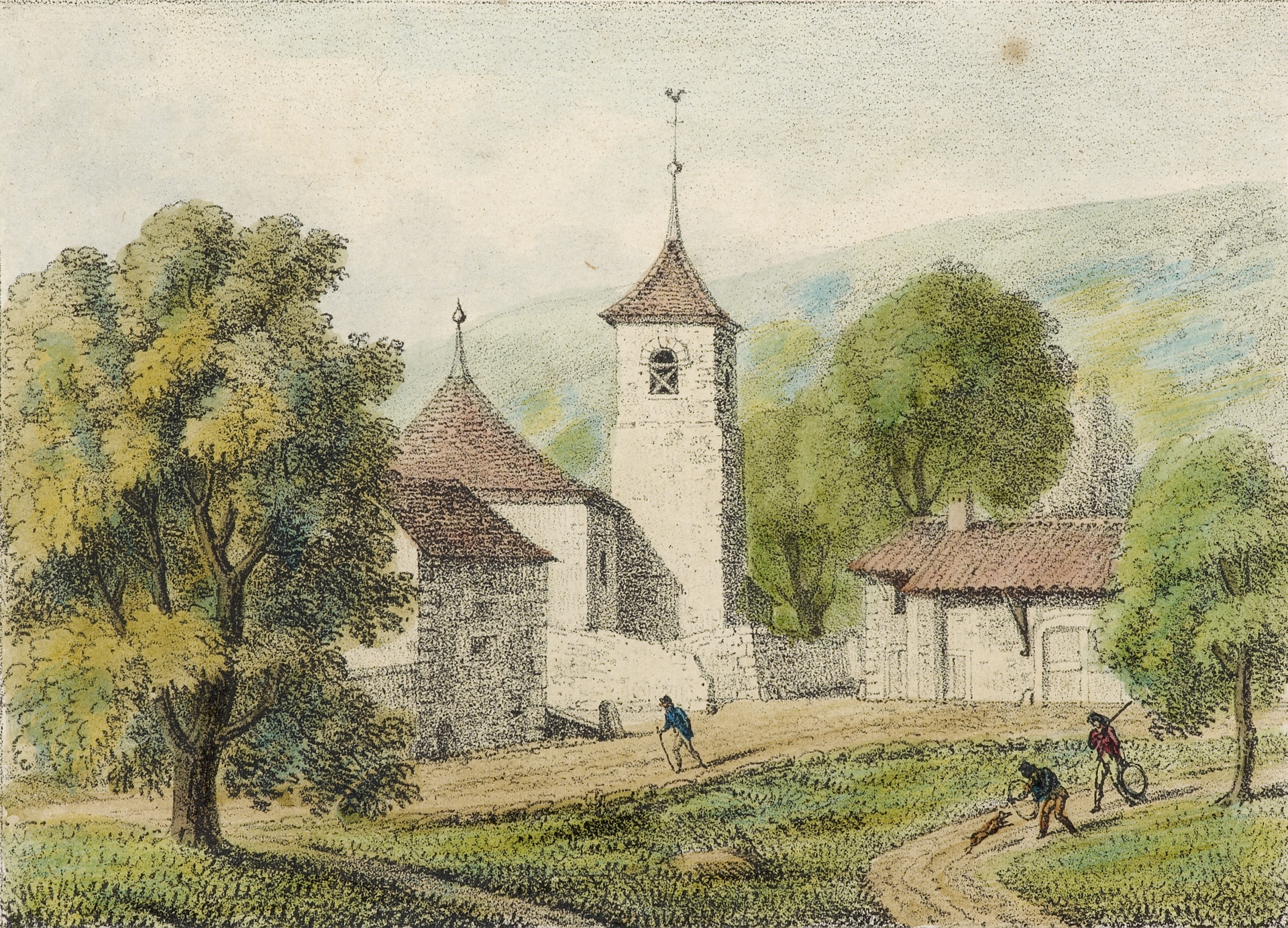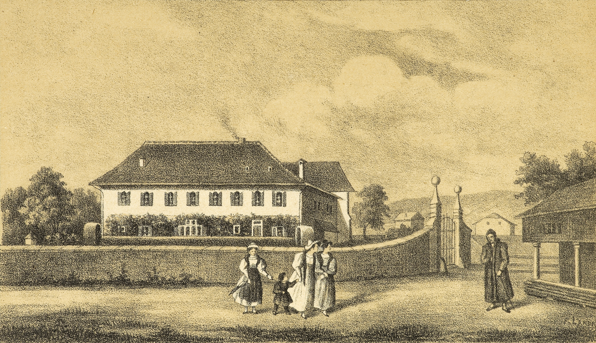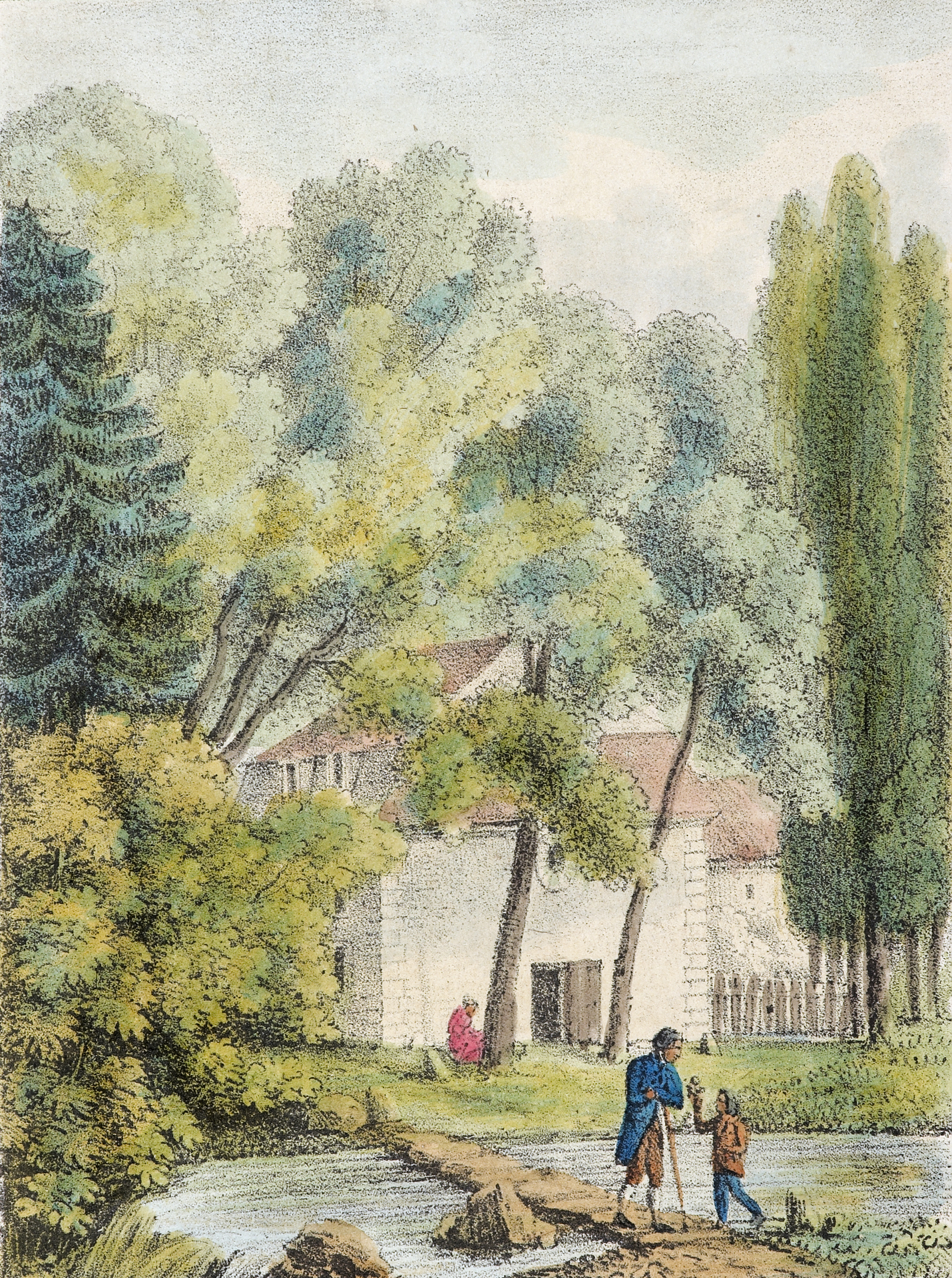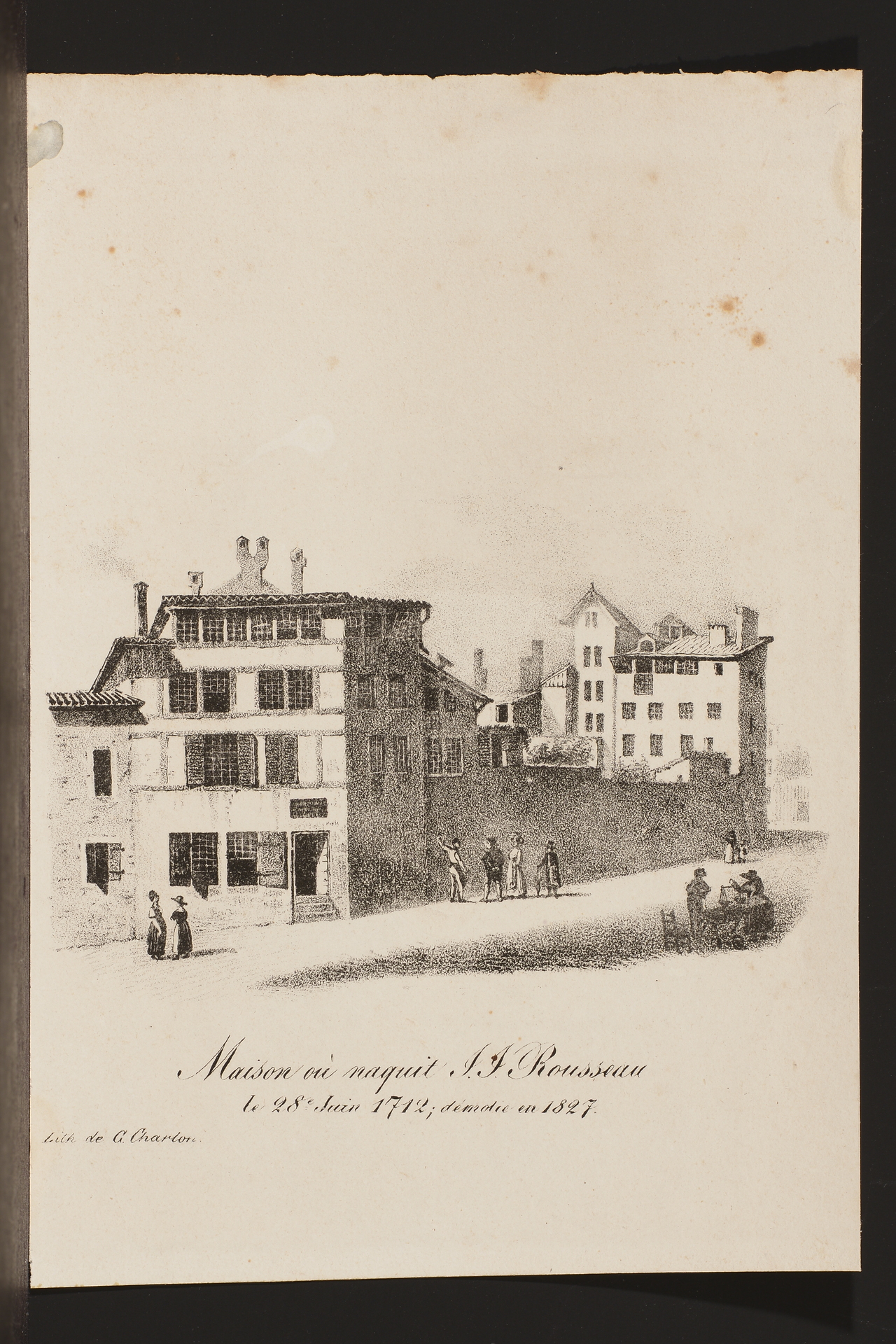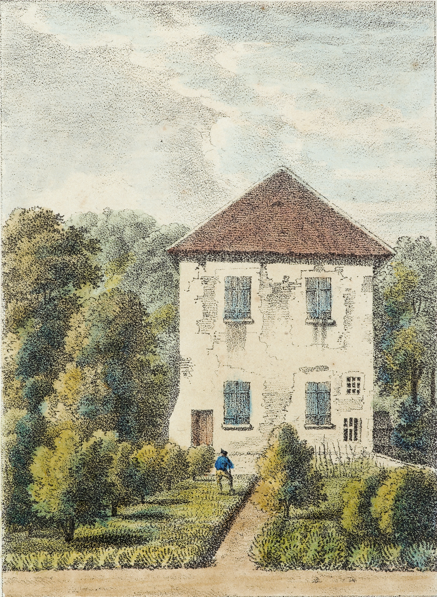 Vue de la maison natale de J. J. Rousseau à Genève, isolée dans la nature.