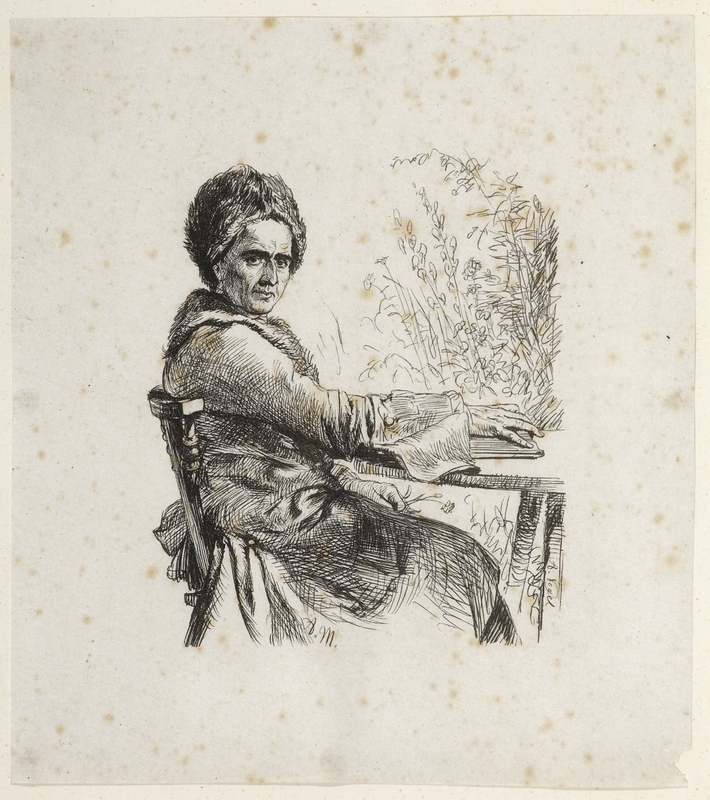 Signé verticalemel sur le pied de la table. Les lettres A.M. sont inscrites dans les plis de la robe d'arménien.» (FM)