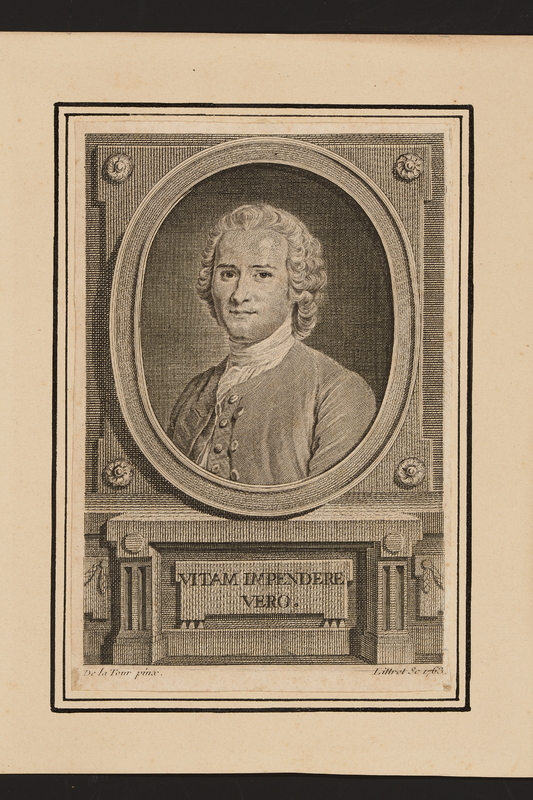 Premier portrait gravé d'après la Tour; frontispice de l'édition de Neuchâtel 1764.