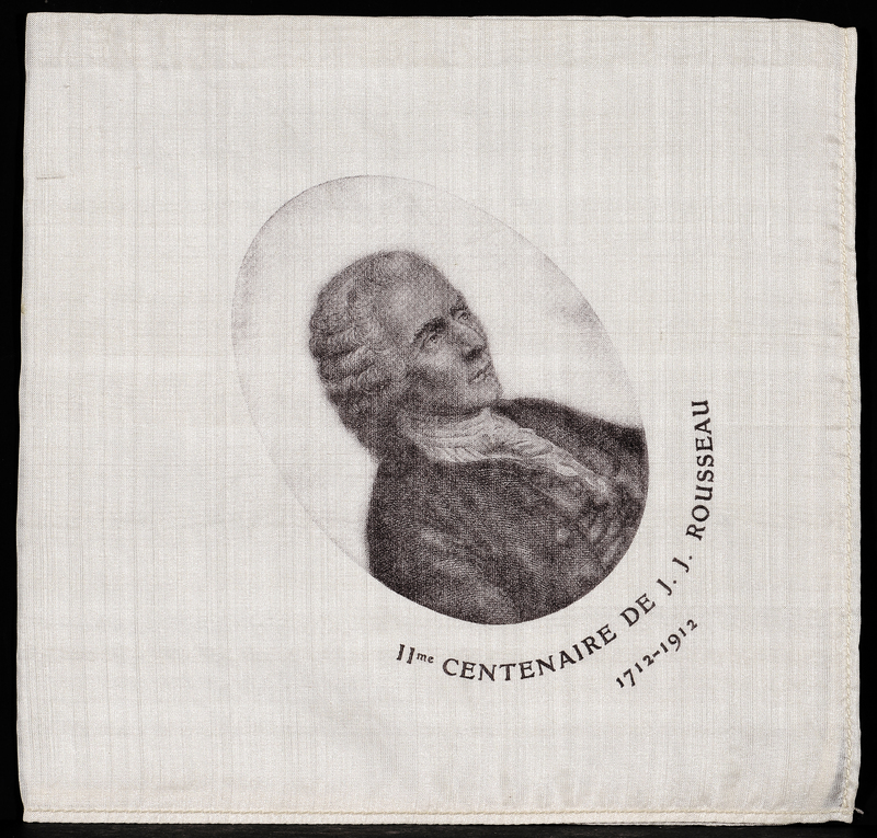 Tissu plié en 4 et imprimé en bistre à l'effigie de Rousseau