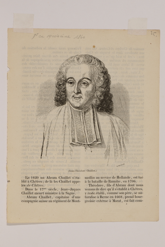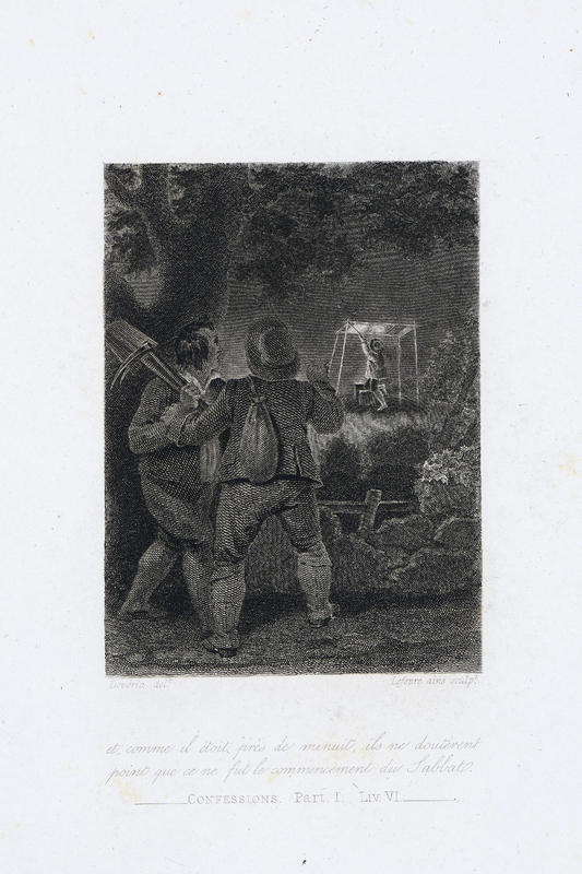En dessinant cette planche, l'artiste a voulu grouper les traits célèbres du paysage môtisan: la maison de Rousseau avec sa galerie [, la fontaine] et la cascade. Il a donc placé la maison où Jean-Jacques habitait le long de la rue principale, et non pas dans son orientation réelle [rotation de 90°].» (FM)