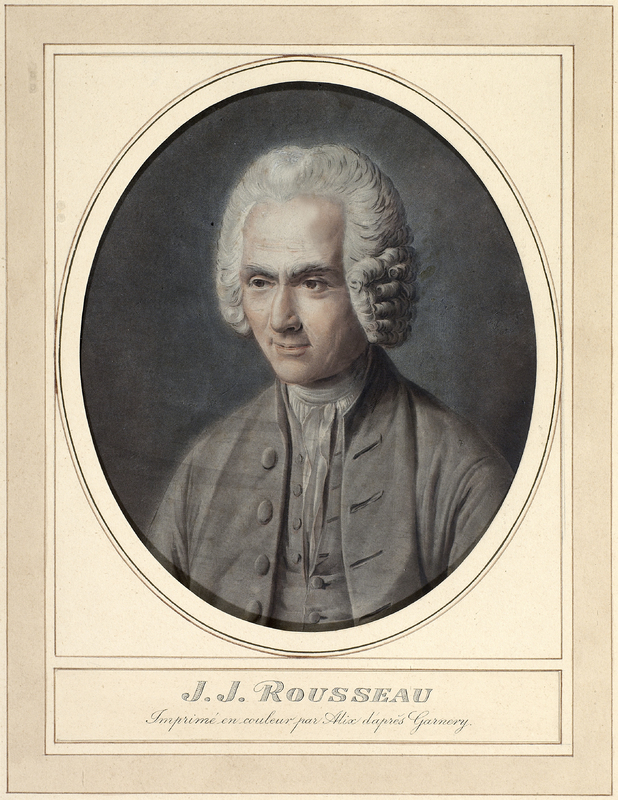 Portrait de Rousseau «représenté presque de face, légèrement trouné à gauche. Il porte l'habit du "citoyen de Genève".