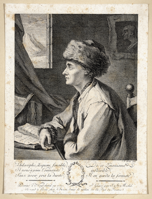 "Puisque vous le voulez absolument, Monsieur, voici deux mauvaises esquisses que j'ai fait faire, faute de mieux, par une manière de peintre qui a passé par Neuchâtel. La grande est un profil à la silhouette, où, j'ai fait ajouter quelques traits en crayon pour mieux déterminer la position des traits; l'autre est un profil tiré à la vue. On ne trouve pas beaucoup de ressemblance à l'un ni à l'autre: j'en suis fâché, mais je n'ai pu faire mieux'" (Lettre à Laliaud, 7 avril 1765)