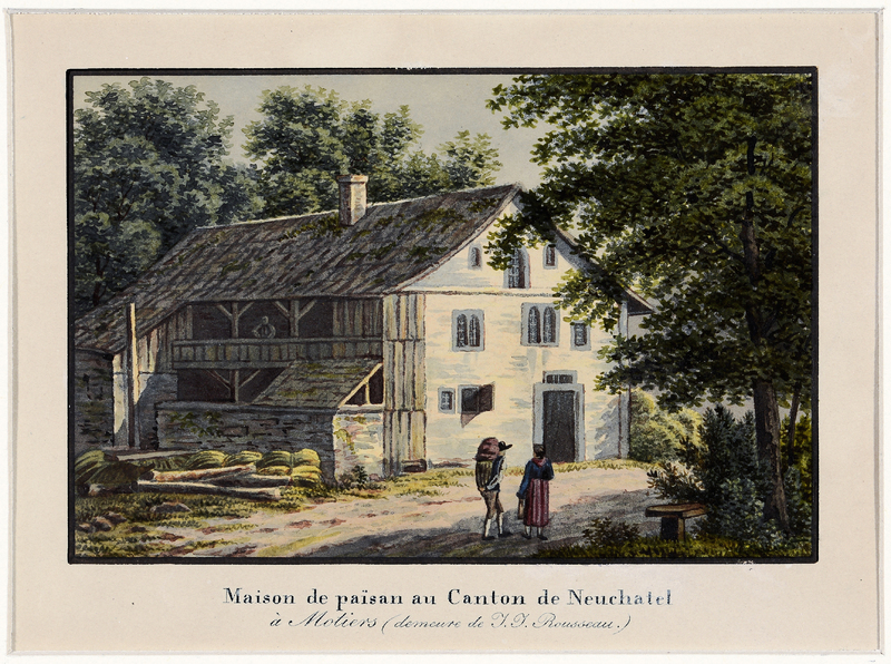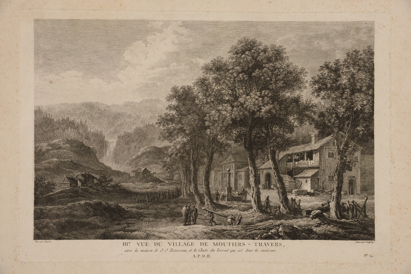 Sur son image fantaisiste, Chatelet regroupe tous les éléments du décor apparaissant dans les Lettres au Maréchal de Luxembourg. «Dans son ensemble le paysage est conforme à la réalité. La cascade tombe au pied de la montagne; on dirait qu'on a repris en plus petit la gravure de la cascade elle-même ['] La grand'rue estombragée de grands arbres, comme elle l'est aujourd'hui encore. La fontaine y déverse ses "belles eaux coulantes". Mais son fût est celui de la fontaine principale de Môtiers, [']. Enfin la maison du philosophe dont devrait paraître seule la façade avec son toit à deux pans a été tournée [de 90 degrés dans le sens antihoraire] de façon à montrer la galerie dans l'alignement de la rue.» (FM. [1977] Deux lettres: 121-122).