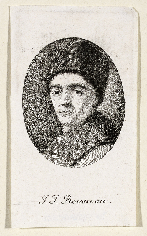 Rousseau de profil à droite, en costume arménien, dans un médaillon ovale. Limité aux épaules et à la tête.