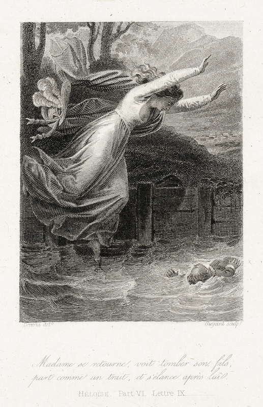 Une femme se précipite au secours d'un enfant tombé à l'eau. Imprimé sur Chine