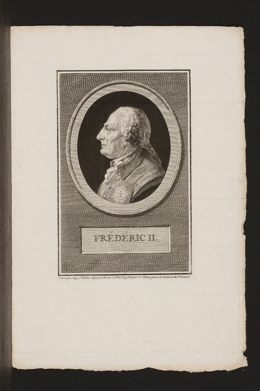 Portrait de Denis Diderot (1713-1784): buste à droite, visage de trois-quarts à gauche, dans un ovale en grisaille encadré, reposant sur une tablette portant le nom. Le tout dans un rectangle en grisaille