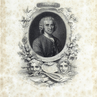 Portrait de J.J. Rousseau en habit français, buste avec décorations symboliques.