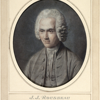 Portrait de Rousseau «représenté presque de face, légèrement trouné à gauche. Il porte l'habit du "citoyen de Genève".