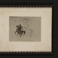 «Dessin original, à claire-voie, sur un carton mince. La scène représente deux chevaux et leurs cavaliers passant devant un fond d'arbres. Rousseau est à cheval, en croupe; il tient par la taille la demoiselle qui l'a invité à monter [Claudine Galley ' OC I: 136]. Les deux demoiselles chevauchent en amazones. Toutes deux regardent Rousseau; celle [Mlle de Graffenried] du premier plan apparaît donc de dos.