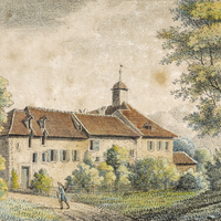 «Vue de la Maison habité [sic] par J.J. Rousseau, / dans l'Isle St Pierre.»