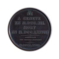 Revers: NÉ | A GENEVE | EN M.DCC.XII. | MORT | EN M.DCC.LXXVIII. | COLLECTION | DES HOMMES ILLUSTRES | M.DCCC.XXIII.