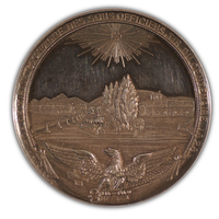 Revers: sous une croix suisse entourée de rayons, Genève, le Mont-Blanc, le Pont du Mont-Blanc, l'île Rousseau; en dessous: Aigle aux ailes déployées tenant la clé de saint Pierre dans ses serres; au pourtour: SOE DE TIR DE CAMPAGNE DES SOUS-OFFICIERS. * TIR DU CENTENAIRE. 1878. Signé à g.: C. RICHARD F.