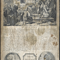 «BALANCE DE FRÉDÉRIC» / «TROIS / HOMMES / CELÉBRES / DU XVIIIeme / SIECLE» «F.A. de Voltaire.» / «J.J. ROUSSEAU.»