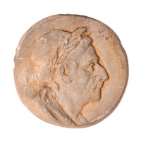 Médaillon en plâtre, diamètre, env. 120, à suspendre (H. B. : « d'après le médaillon de Bartholomé, souvenir du dimanche 30 juin 1912. Taverne du Panthéon, Dîner avec Henri Fazy »), avec profil de Rousseau tourné à droite, tête nue et couronnée de laurier. En haut à droite : J.J. Rousseau.