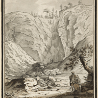 «Cascade près de Môtier travers [sic] dans le Comté de Neufchatel» (titre manuscrit) en bas au verso, très petit cachet de collectionneur floral violet, inconnu des successeurs du Lugt (2010)