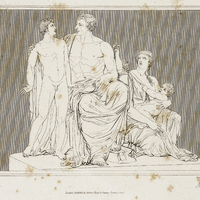 «Cette pièce in-8° représente un groupe sculptural au centre duquel figure Rousseau assis, costumé à l'antique, le torse nu, s'entretenant avec Emile nu et debout, à côté de lui à gauche. Le philosophe tient un rouleau sur ses genoux et appuie amicalement sa main sur l'épaule de son élève. A droite une femme accroupie joue avec un jeune enfant et écoute l'entretien. Derrière elle un enfant plus âgé tend une fleur à Rousseau.» (Bachelin)