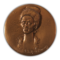 Avers: J.J.ROUSSEAU suivi d'une initiale J. (?). Buste tourné légèrement à g., habit d'Arménien; long cou avec col de fourrure; bonnet du type figuré sur le portrait dû au baron Gérard.