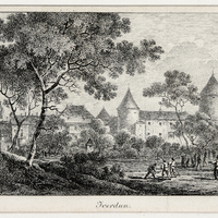 - Vue inversée du château d'Yverdon pris de l'est.