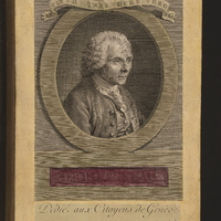 «VITAM IMPENDERE VERO» (en lettres grises) // «J. J. ROUSSEAU.» (en lettres blanches) /. «Dedié aux Citoyens de Genève.» // «A Paris Maison de Madame Duchesne Libraire ,Rue S.t Jacques.»
