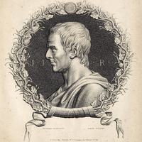 Buste de J. J. Rousseau à la romaine, nu tête sans bandeau, visage de profil tourné à gauche, dans une couronne de chêne suspendue à unmacaron et liée en bas par un ruban.