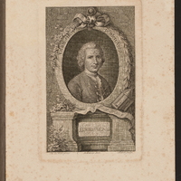 Portrait de Rousseau en buste de trois-quarts à droite, dans un médaillon ovale avec la devise «Vitam im. / pendere Vero.». Le cadre est suspendu à un clou par un ruban, entouré à gauche par des feuilles de lierre, à droite par une rtresse de laurier. Sur le ruban, en dessous d'une lampe-tempête à bougie «Il est Trouvé»