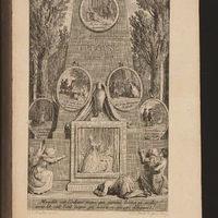 Le socle d'un obélisque dans un bois. Sur le fût, le titre, un médaillon rond. Sous le titre, deux médaillons ovales et deux autres de chaque côté en-dessous. Devant le socle, untableau de pierre surmonté d'une urne. Des personnages éplorés et effondrés entourent cette image. Au-dessous on lit: «Maudite soit l'indigne main qui jamais levera ce voile ! / maudit soit l'œil impie qui verra ce visage défiguré !»