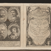 Page de titre précédée d'un frontispice formé de portraits en médaillon de «Junius Brutus», «Mutius Scevola», «J.J. Rousseau» (de trois-quarts à droite), «Guillme Tell», placés deux par deux et les uns sous les autres sur un fond noir.