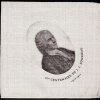 Tissu plié en 4 et imprimé en bistre à l'effigie de Rousseau