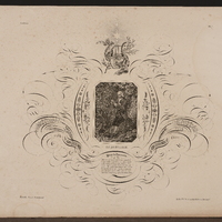 Cadre rectangulaire, coupé aux quatre angles. Il est entouré d'arabesques et de feuillages. Au-dessus, une étoile à six branches rayonne sur une lyre traversée par une branche de laurier. Un double trait "carré" cerne l'image.