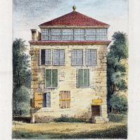 Vue de la maison natale de J. J. Rousseau à Genève, isolée dans la nature.