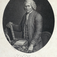 Portrait de J. J. Rousseau au pointillé, «représenté debour à mi-corps, tourné de trois-quarts à gauche, en habit de citoyen de Genève.