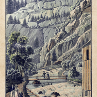 «Source de la Reusse à S.t Sulpice» (en lettres blanches) / «Val-de-Travers.»