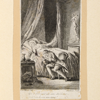 Pl. IX, 3e Vol., p. 107, de Le Comte de Valmont: ou, Les égaremens de la raison, lettres recueillies ['] (1e éd. 1774) de l'abbé Philippe Louis Gérard (1737 ? ' 1813), probablement de l'édition illustrée de 1777-1778.