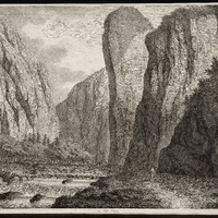 Reprise de «II.me Vue des rochers de Moustiers-Travers. / Comté de Neuchatel. / A.P.D.R.» «Tableaux de la Suisse», Laborde et Zurlauben, Paris, 1780-1786, N°96 bas.