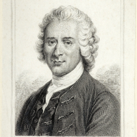 Portrait de J. J. Rousseau portant «l'habit du "citoyen de Genève"; le visage est légèrement tourné à gauche; il est tête nue; le buste est tourné de trois-quarts à gauche.